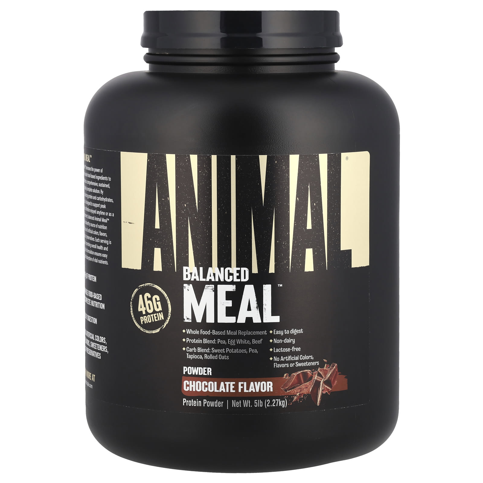 Balanced Meal™, Protein Powder, Chocolate by Animal scores below most products in its category in the protein powder category with an XRay Score of 13/100, placing #251 out of 265. On the flip side, leanness isn't its strongest suit (bottom 96% of the category). The protein comes from a plant blend — designed to cover a wider amino acid spectrum than single-source plant proteins. Flavor-wise, it features chocolate notes.