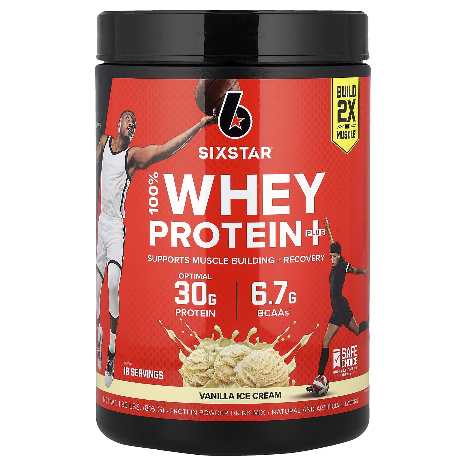 100% Whey Protein Plus, Vanilla Cream by SIXSTAR has room for improvement overall in the protein powder category with an XRay Score of 30/100, placing #234 out of 291. On the flip side, net carbs are on the higher end (bottom 77% of the category). Built on whey isolate — a refined, fast-digesting protein with minimal fat and lactose. Flavor-wise, it features vanilla notes. This product also is gluten-free.
